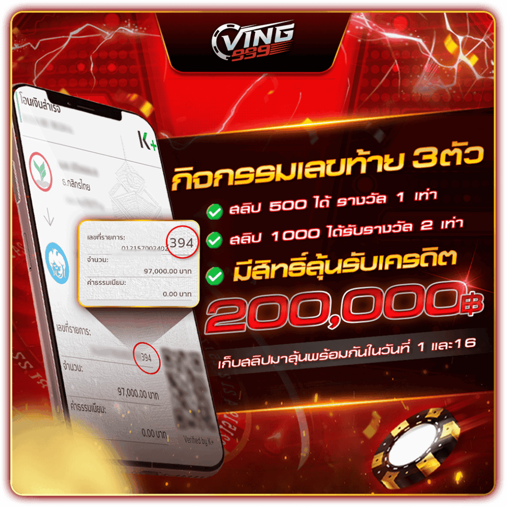 ทุกการเดิมพันรับฟรี VING Point ลุ้นแลกสิทธิ์พิเศษมากมาย แลกรับของฟรีได้มากมาย ทั้ง เพชร เงินสด และของรางวัลต่างๆ อีกมากมาย – รับฟรีทันที 1 Point หลังจากท่านสมาชิกทำการเดิมพัน 100 บาท ในทุกๆค่าย เกม (Turnover 100 THB = 1 point) –สามารถนำ point ที่มีไปแลกสิ่งต่างๆได้ตามใจท่านที่เมนู สุ่มของรางวัล